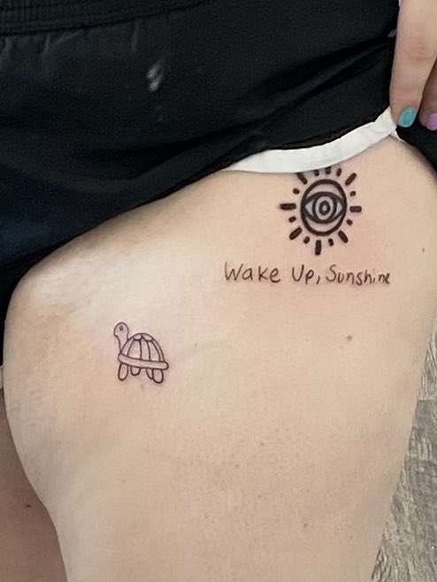Grace On Twitter My First Tattoos The Alltimelow Sunsine Logo With The The Album Song Title Written By Rickypdillon And I Little Turtle For Turtles All The Way Down By John Green So