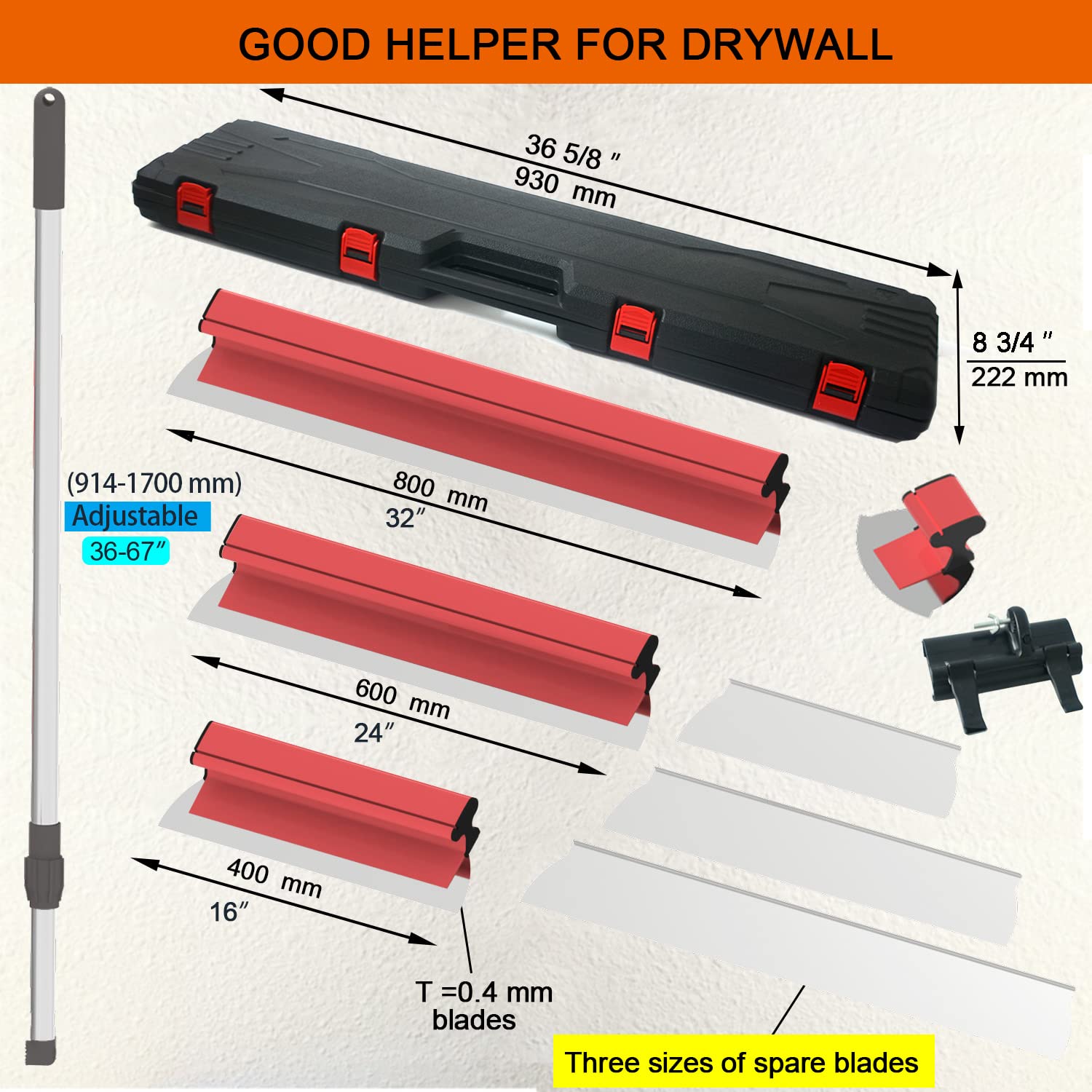 Amazon Com Bxgtech Drywall Tools Skimming Blade With Extension Handle 12 22 32 Blades Extruded Aluminum 301 Stainless Steel Construction Tools End Caps Wall Board With 0 5mm 0 35mm Thickness Tools Home